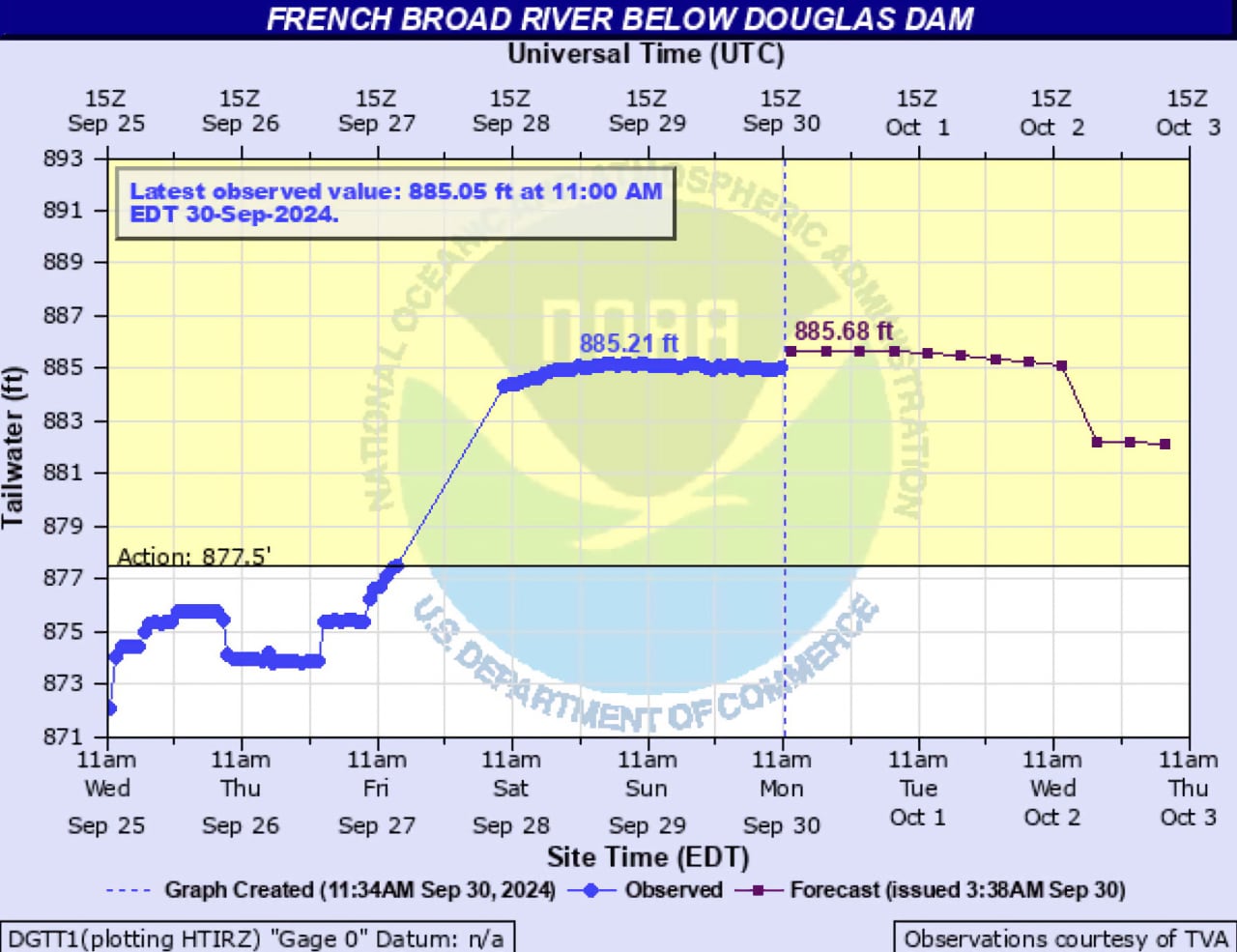 At 9:24 p.m. Sunday, the regional office of the National Weather Service in Morristown issued a flood warning for Sevier and Knox counties because of upstream water releases at Douglas Dam to regulate the massive surge of water into the Tennessee Valley Authority reservoir system over the past week. This Flood Warning extends until 7:30 p.m. Oct. 1.