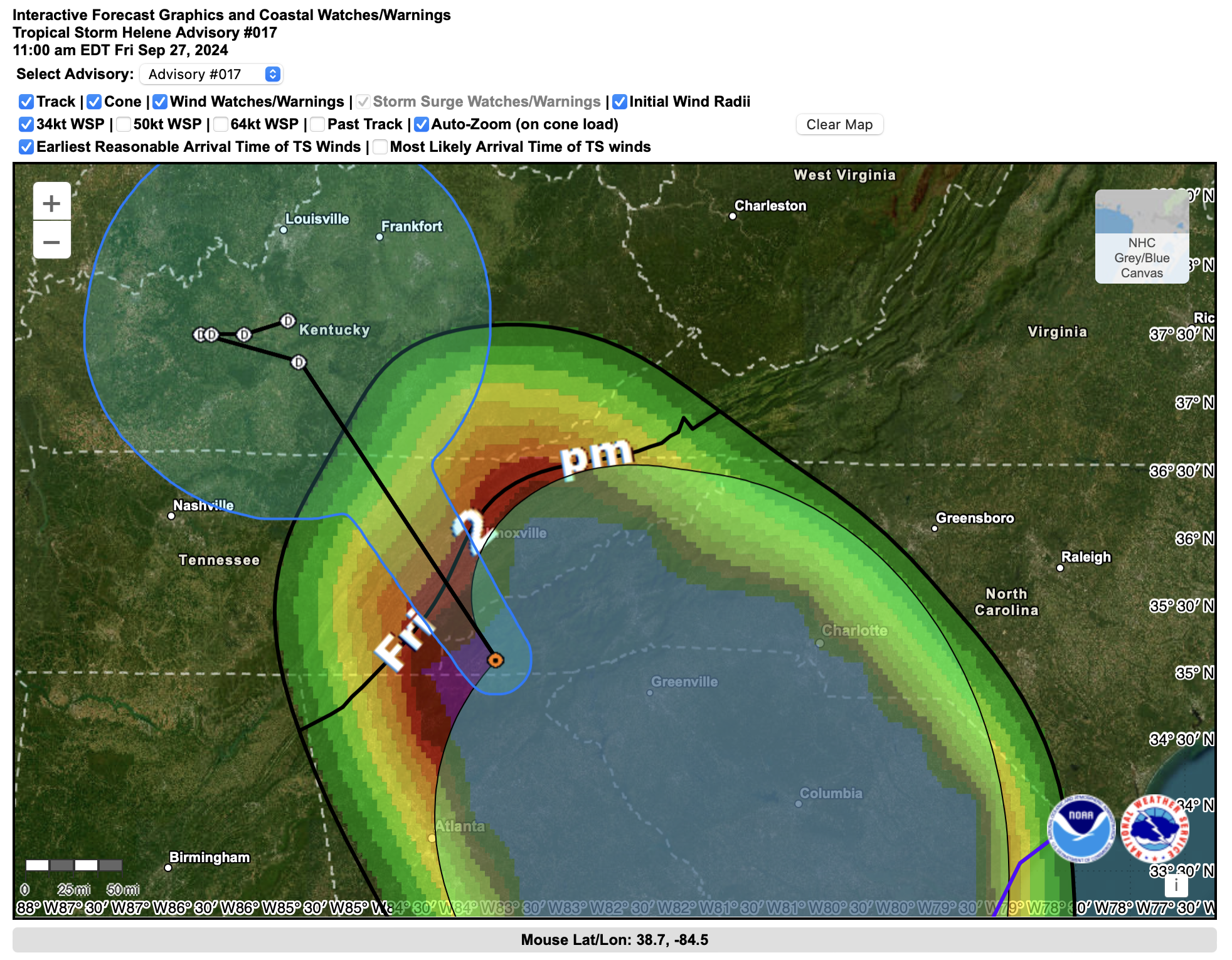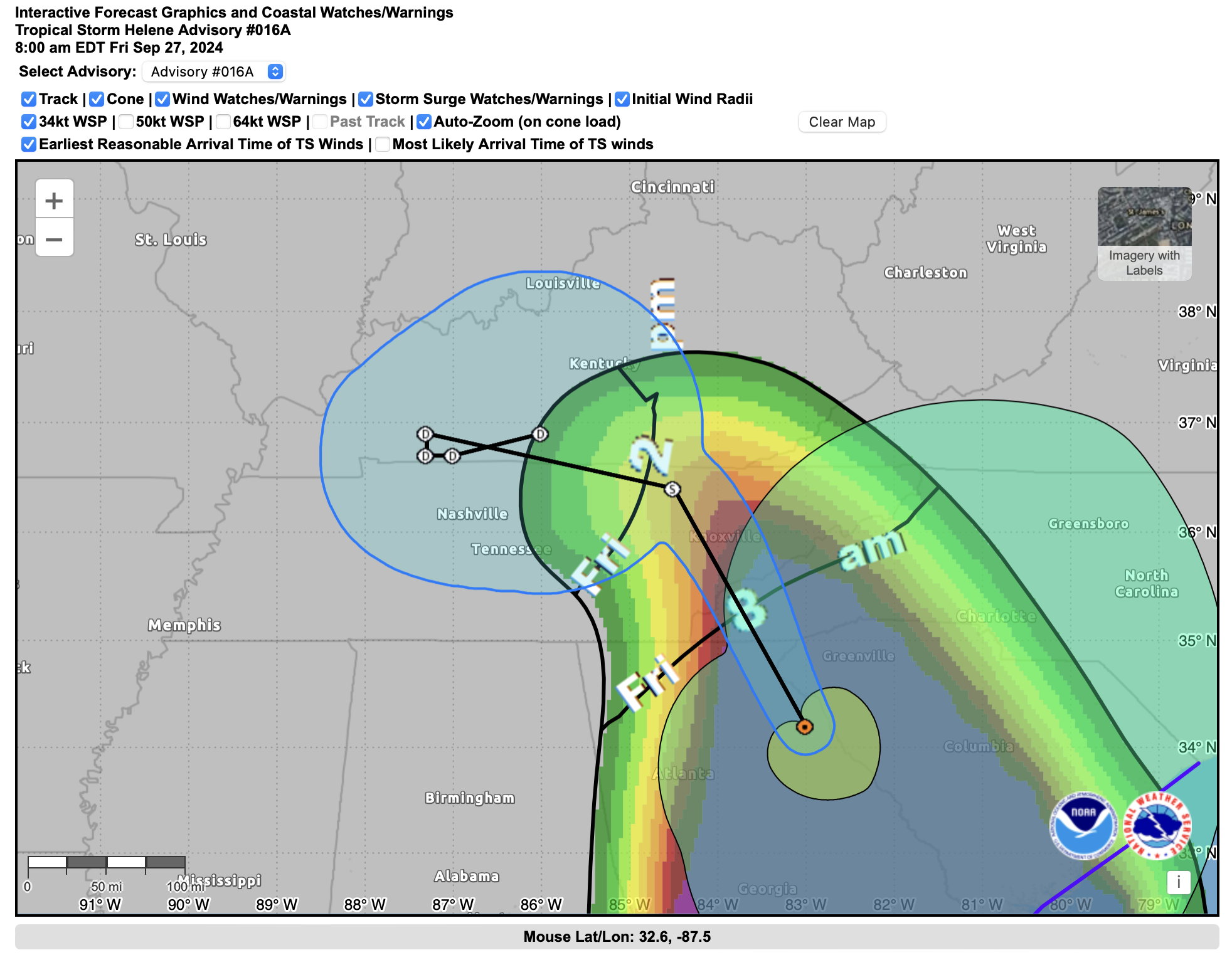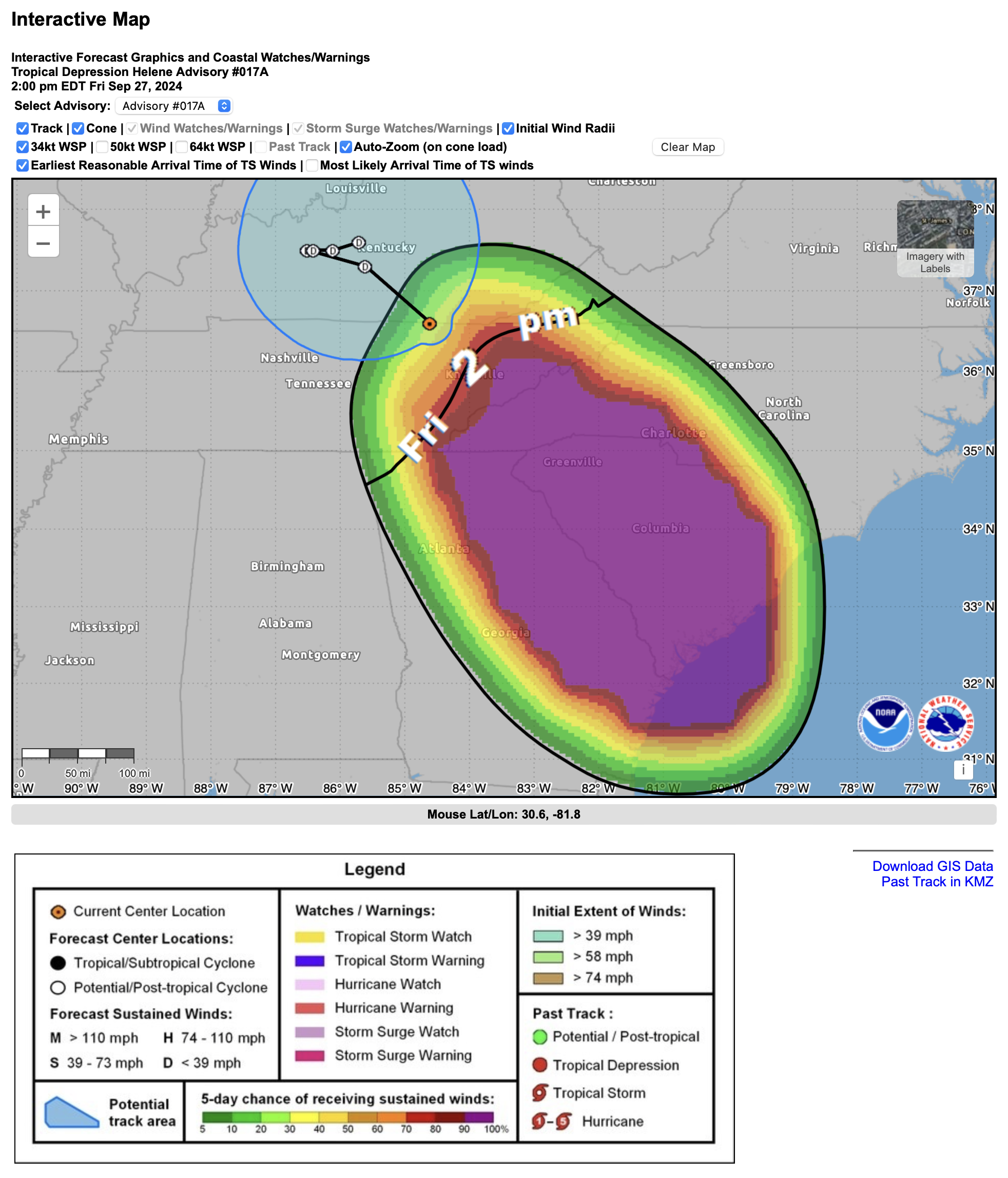 - Helene is now a post-tropical depression centered over Kentucky.