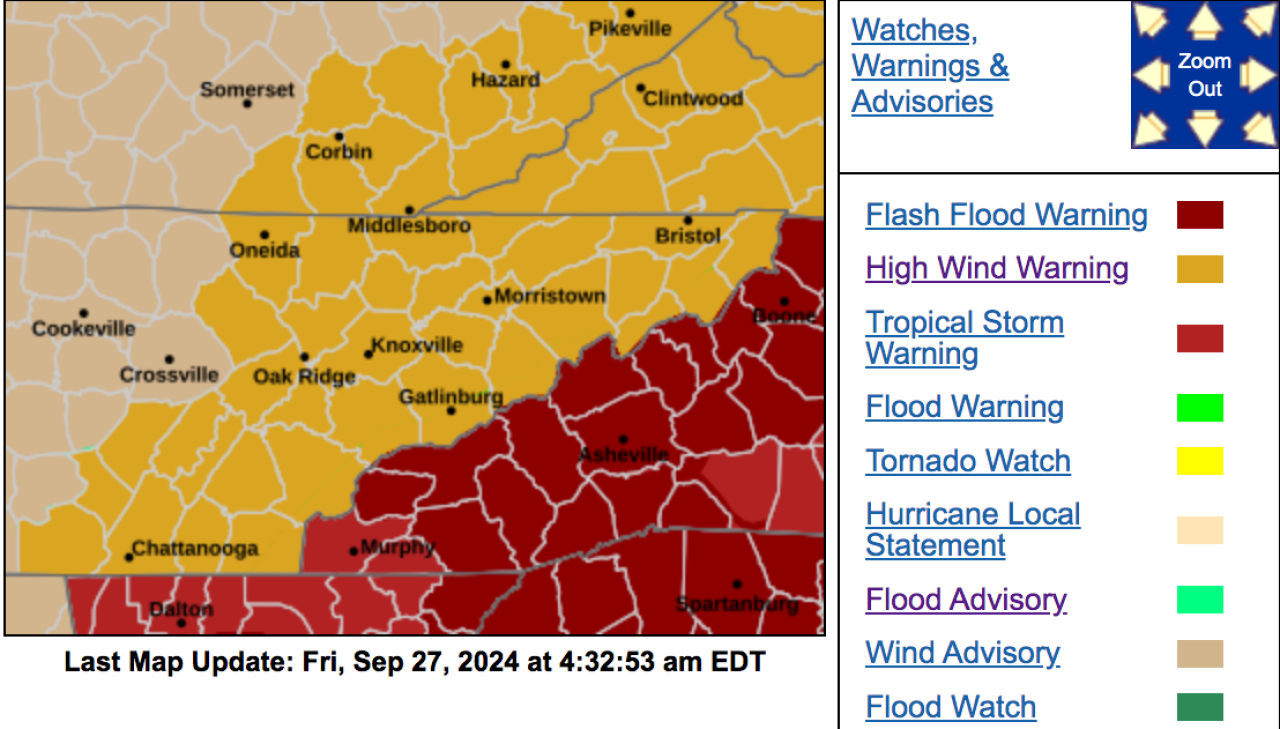 - Here’s a look at the plethora of current National Weather Service warnings in place across the Southern Appalachians:
