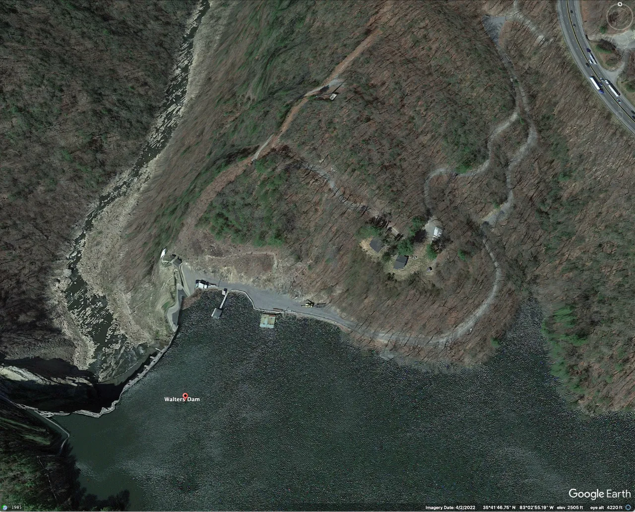 Waterville Lake (shown here during a period of low flow) is about halfway between Asheville and Newport. Travelers may notice it along the south-west side of I-4O.