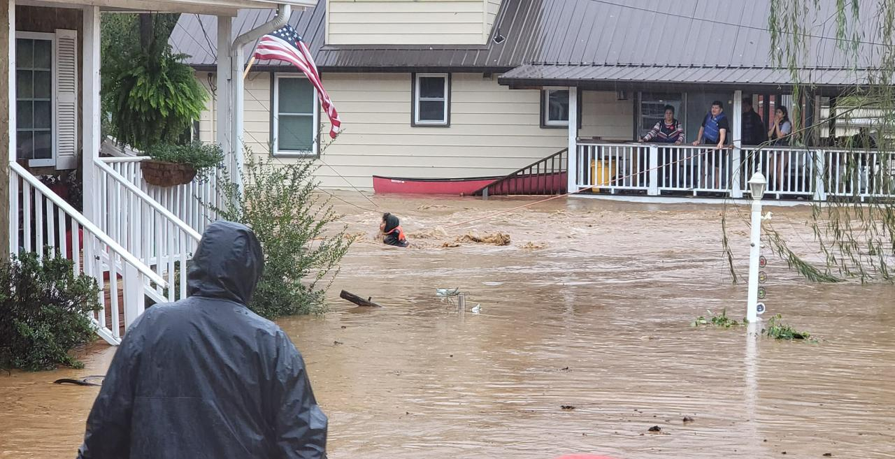 A water rescue under way in Swannanoa, N.C. during flooding of the Swannanoa River east of Asheville on Sept. 27, 2024. Bill Rhodes Photo